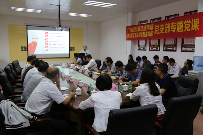 集團公司總工程師覃炳賢參加專題黨課并做發(fā)言,就如何開展好項目建設工作提出了具體要求,提出要按照“建設綠色高速,共享長壽密碼”的理念,將賀巴馬高速建設成一條旅游路、一條探尋長壽之路。