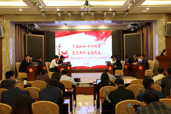 11月15日,新恒通公司賀巴高速(鐘山至昭平段)建設(shè)指揮部黨支部精心組織,舉辦了一次高質(zhì)量的黨的十九大知識(shí)競(jìng)賽。活動(dòng)以“不忘初心、牢記使命,堅(jiān)定步伐、勇跟黨走”為主題,各參建單位7個(gè)代表隊(duì)參加了比賽,指揮部代表隊(duì)以480分摘得桂冠。