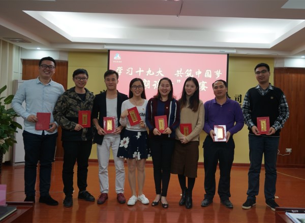 比賽產(chǎn)生一等獎(jiǎng)一名,二等獎(jiǎng)兩名,三等獎(jiǎng)五名,公司副總經(jīng)理、指揮部指揮長(zhǎng)、黨支部書記陸原恩為獲獎(jiǎng)?wù)哳C發(fā)了榮譽(yù)證書和黨的十九大相關(guān)學(xué)習(xí)書籍。