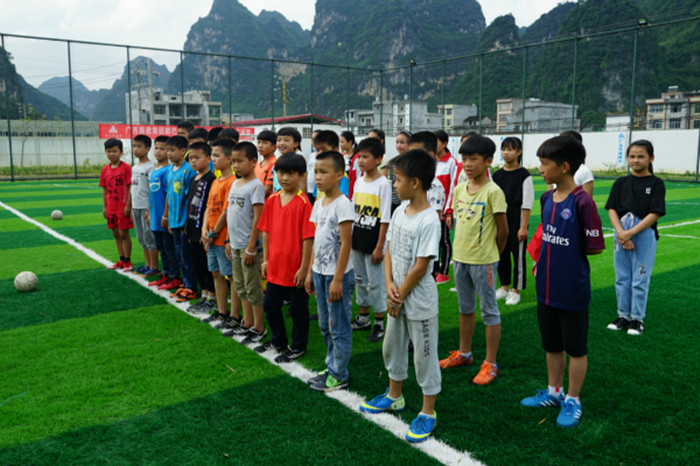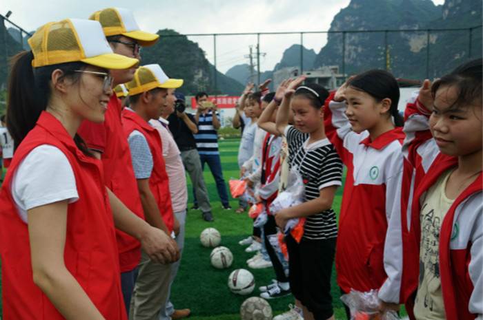六也鄉中心小學韋校長對青年志愿者們的幫助表示衷心的感謝,他表示:志愿者們的愛心不僅解決了孩子們的運動場所問題,更是在孩子們的心中種下了希望的種子,圓了孩子們的足球夢。六年級的小浩作為球隊隊長為都巴高速志愿者代表送上錦旗,并表示一定不會辜負大家的愛心與期望,勤奮鍛煉、努力向上,做一個對社會有用的人。