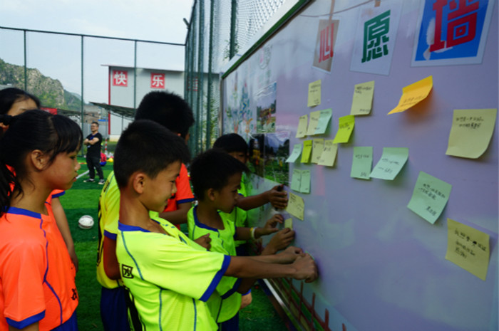 在活動現場,志愿者們還為孩子們設置了“心愿墻”,孩子們在老師的指引下寫出了埋藏在心里已久的心愿—“我想要一件皇馬隊球衣”、“我想要一本日記本”……一個個質樸的心愿都將在志愿者的幫助下得以實現。